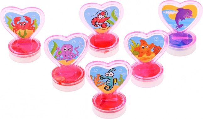 Шест сърцевидни печата в компактна опаковка – идеални за у дома, детската градина и при пътуване.
