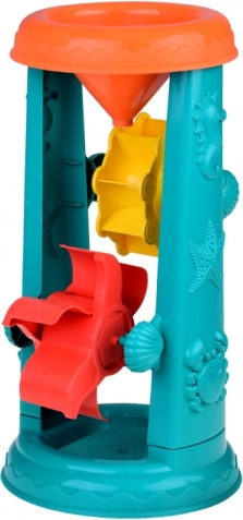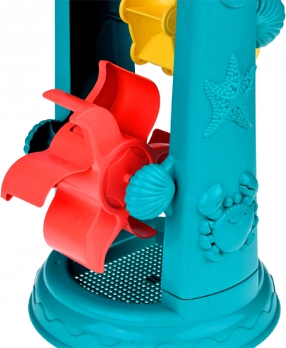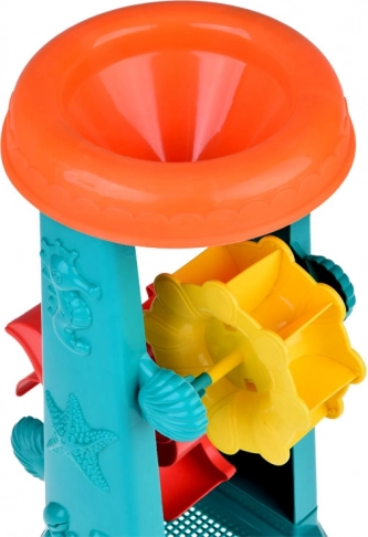 Детският пясъчен комплект е внимателно проектиран с мотиви на морски обитатели като рибки и октоподи. Най-голямата атракция е 37-сантиметровото водно колело, в което децата могат да сипват пясък или да наливат вода и да наблюдават как се въртят двойните колела. Това подпомага развитието на логическото мислене и разбирането на причинно-следствените връзки.