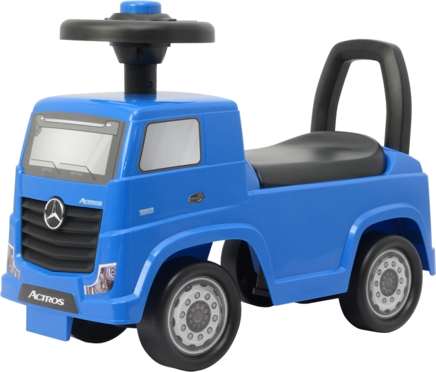 Синята количка за бутане MERCEDES Actros е идеална за деца, които могат самостоятелно да се отблъскват с крачета. Ниското тегло улеснява боравенето както за родители, така и за деца, а здравата конструкция гарантира безопасно каране върху гладка повърхност у дома, на двора и в градината. Акцентът върху детайлите – джанти, фарове и предна решетка – създава автентична визия на товарен автомобил.