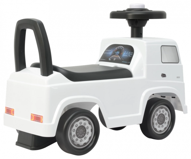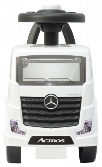 Стилно детско колело за бутане с официален лиценз на MERCEDES ACTROS в бял цвят, идеално за първи преживявания в движението у дома и навън. Леката, но здрава пластмасова конструкция, реалистичните детайли на колелата, светлините и предната решетка, както и удобното отбутване с крачета подпомагат развитието на равновесието и моториката. Компактните размери улесняват пренасянето и съхранението.
