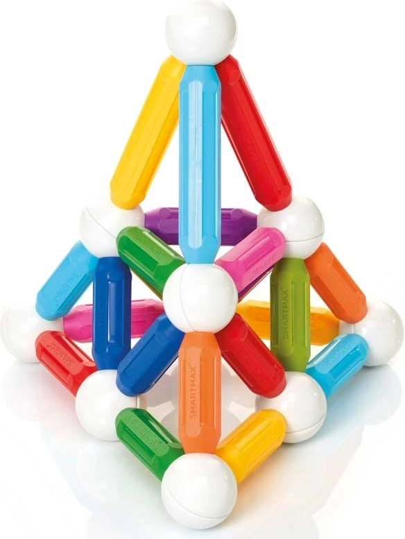 Открийте забавния и безопасен магнитен конструктор за най-малките – SMARTMAX Start XL с 42 елемента. Цветните магнитни пръчки и топки се съединяват лесно „с клик“, развиват фината моторика, креативността и STEM уменията. Подходящ от 1 година, съвместим с всички комплекти SMARTMAX и идеален за първи големи постройки.
