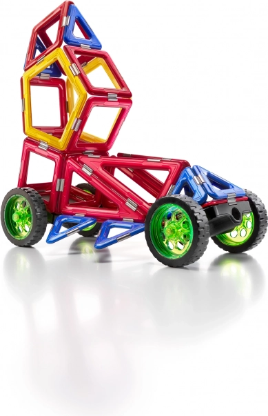 Сглобявайте състезателни коли по инструкции или по собствена фантазия! GEOSMART Roboracer е динамичен магнитен конструктор с ярки цветове и здрава конструкция, който насърчава откриването на основни технически принципи. Силните магнити с двойна предпазна система държат моделите стабилно заедно и гарантират дълъг живот на играчката.