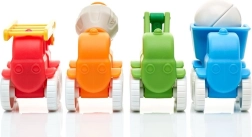 Сглобете пожарна кола, камион, бетонобъркачка и челен товарач – или разменяйте частите помежду им. Вариативността на елементите развива въображението и тематичната игра.
