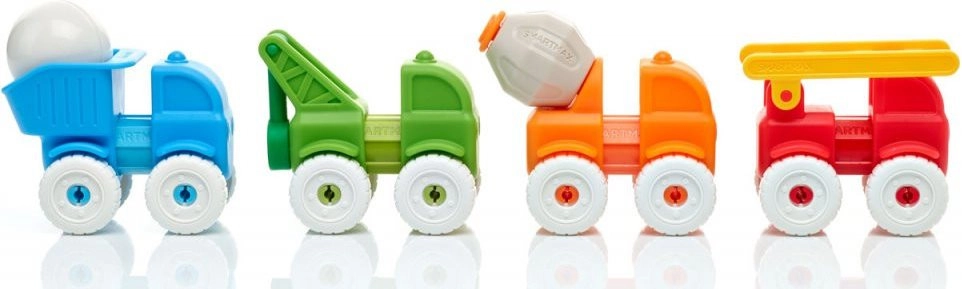 Магнитен конструктор за най-малките с 13 елемента позволява на деца от 1 година лесно да сглобят четири различни автомобила: пожарна кола, камион, бетонобъркачка и челен товарач. Големите, издръжливи части благодарение на силните магнити се свързват бързо и подпомагат развитието на фината моторика и въображението.