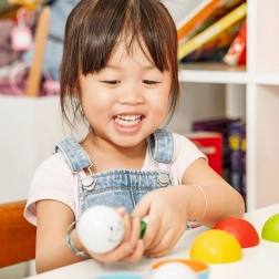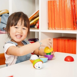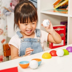 Весели лица и пъстри цветове мотивират децата да подреждат, сортират и да играят на криеница с топчетата.