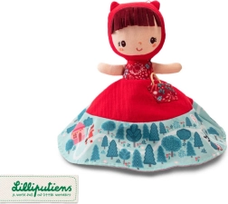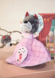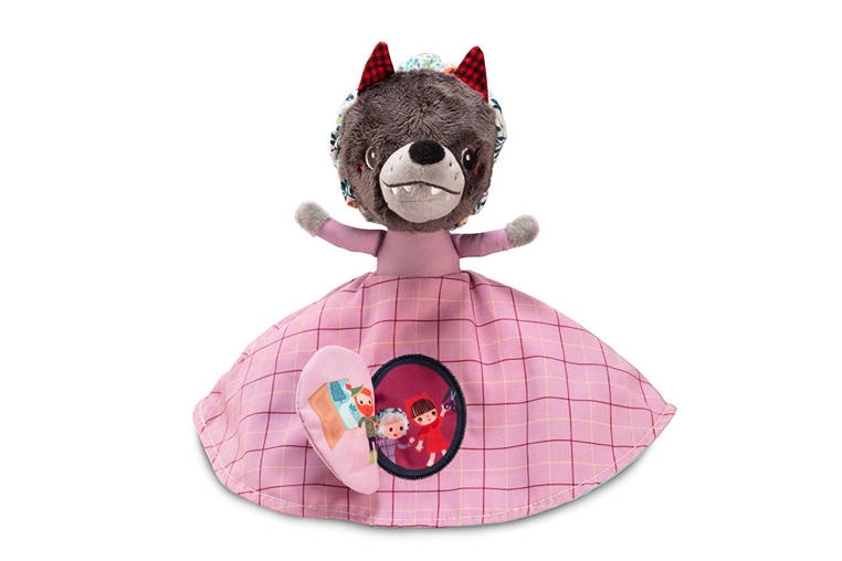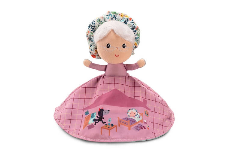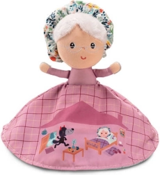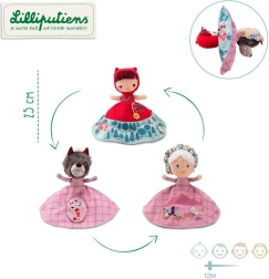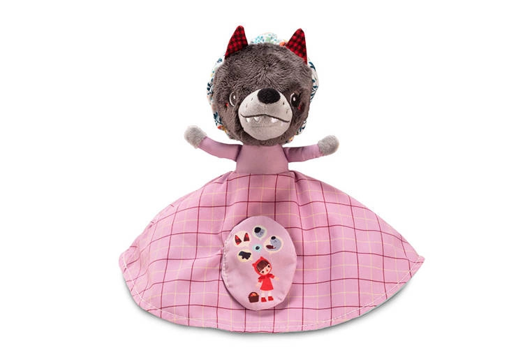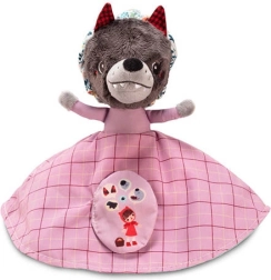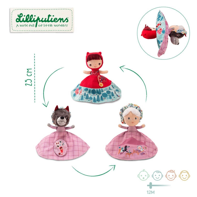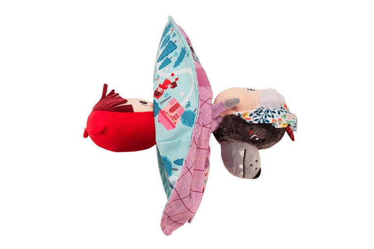 Влюбете се в куклата, която комбинира три героя в една играчка – Червената шапчица, Бабата и Вълка. Нужно е само да завъртите куклата и веднага се появяват различни персонажи от популярната приказка. Куклата е изработена от мек материал, който позволява манипулативна игра и осигурява безопасно забавление благодарение на нежната повърхностна обработка.