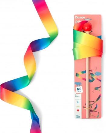Децата могат да създават собствени двигателни изпълнения у дома или в двора с танцовата лента и пръчицата. Дъгата от цветове в комбинация с музика вдъхновява радост от танца и движението. Продуктът е подходящ за деца от 3 години, както за момичета, така и за момчета, които искат да подобрят координацията око-ръка и моторните си умения.