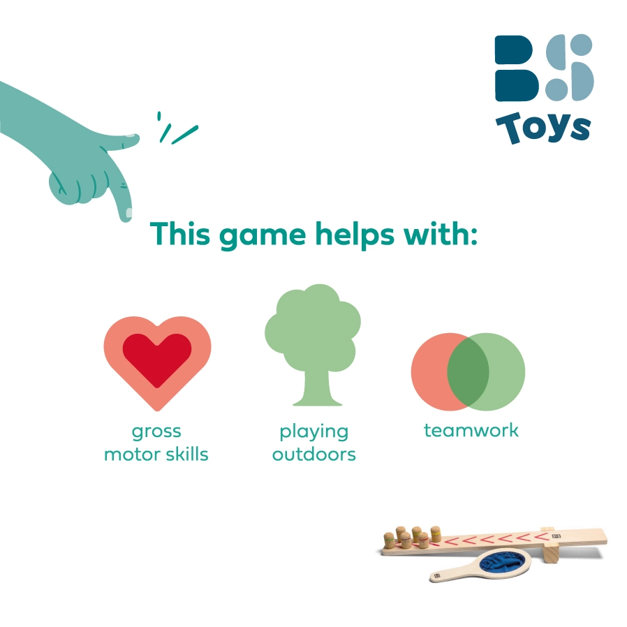 Продължителен баланс и динамично движение поддържат вниманието и енергията на децата. Перфектна за игра по двойки или редуване в отбор.