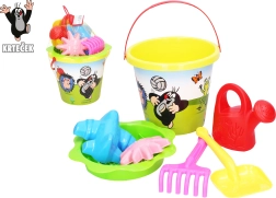 Насладете се на безгрижна игра в пясъчника с комплект с мотив Кърт. Този голям жълт комплект за пясък включва всичко необходимо: кофичка 3,5 l, сито, 2 формички, лопатка, гребло и лейка – идеален за креативно строене и забавления навън.