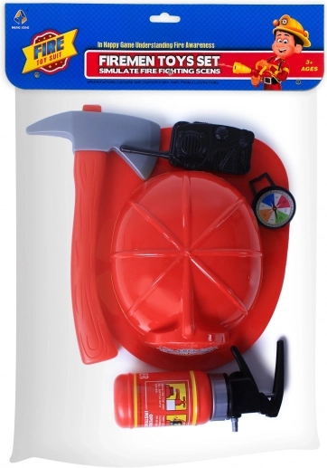 Практична играчка за малки спасители: пълен пожарникарски комплект с каска, брадва, уоки-токи, компас и воден пожарогасител. Децата ще се радват на реалистична игра на пожарникари, безопасни PVC материали и богати аксесоари за дълги часове забавление и учене.