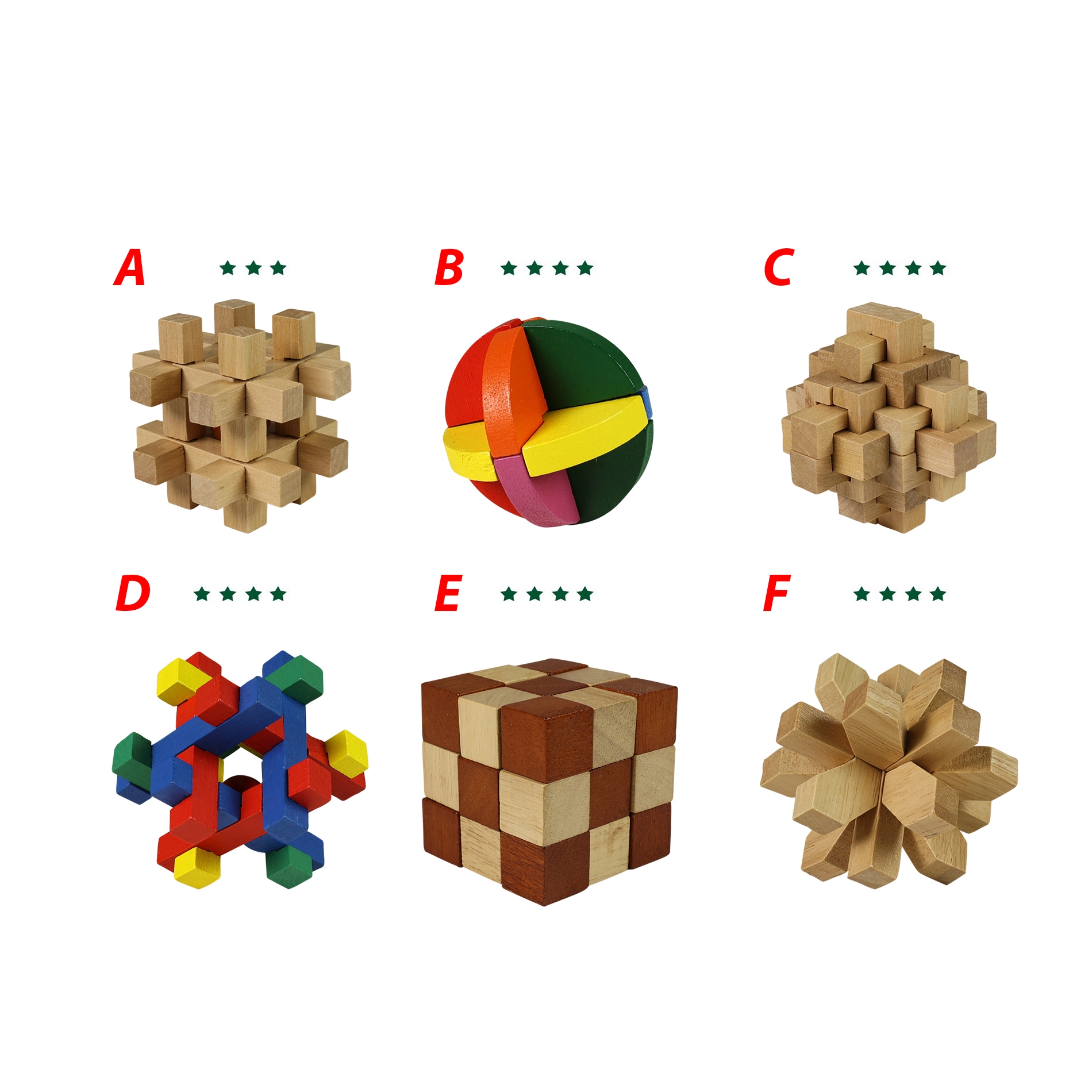 Тази дървена главоблъсканица е идеален избор за всеки, който иска да тренира уменията си за решаване на задачи. Предлагаме я в шест разнообразни варианта, които осигуряват различни нива на предизвикателство.