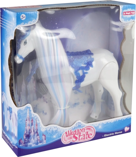 Представяме електрическия кон от колекцията Зимно кралство, който е перфектният спътник за малките почитатели на приказките и фантазията. Този вълшебен кон предлага следните функции: