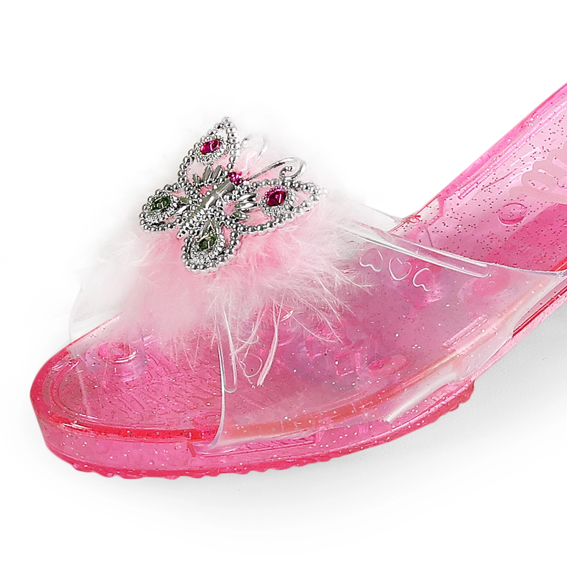 Принцески пантофки, които превръщат всеки тоалет в приказка. В златно и розово, украсени с нежен пеперуден акцент и пера, те са идеалният избор за малки принцеси.