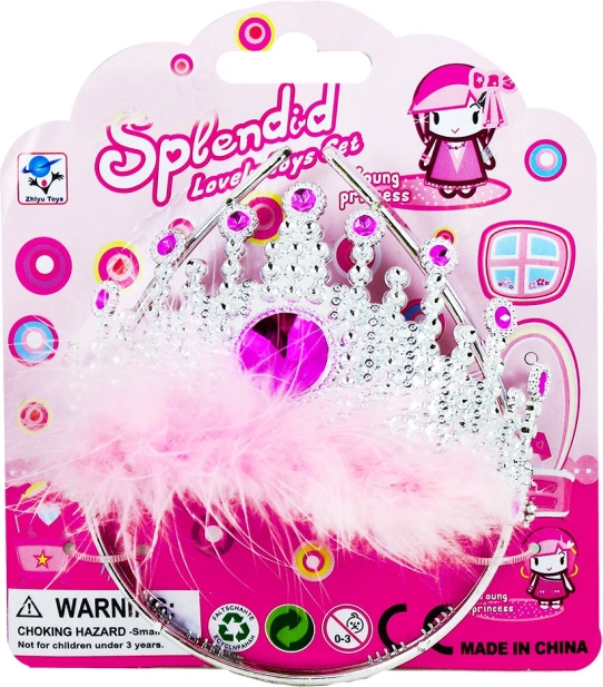 Елегантна корона за всички малки принцеси, украсена с нежни розови елементи и пера. Страхотен аксесоар към костюм, който ще впечатли всяка малка госпожица.