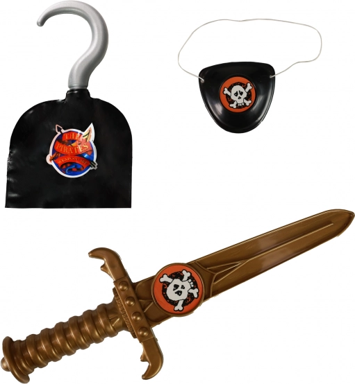 Представяме пиратски костюм, перфектен за момчета на възраст 3–7 години (104–122 см). Този костюм включва всички необходими елементи за пиратски приключения: