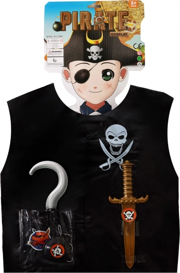 Пиратска карнавална жилетка за деца е идеалното допълнение за всички малки приключенци! Включва пластмасов кинжал, кука и наметало, които ще зарадват всеки малък пират.