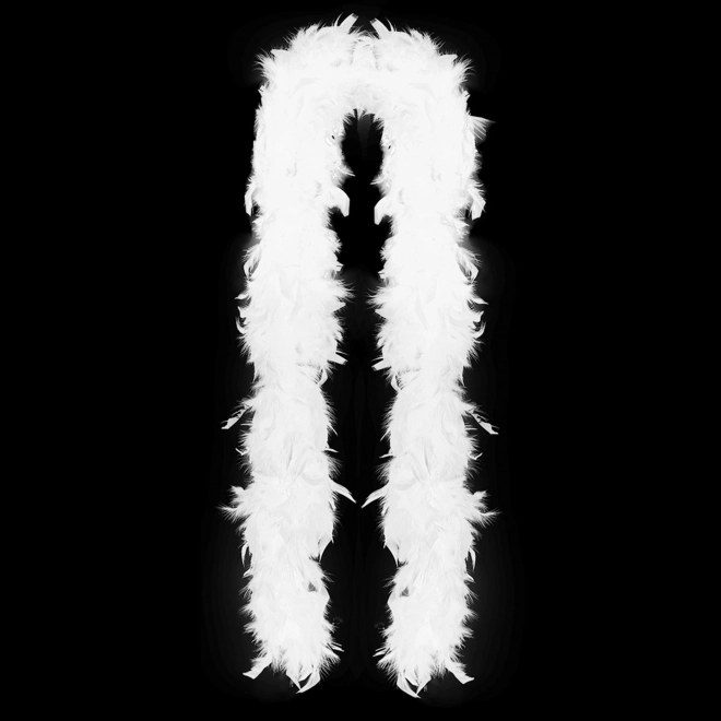 Добавете на визията си щипка глемър елегантност. Това бяло пералено боа е леко, приятно на допир и лесно се комбинира с вечерни рокли и карнавални костюми. Благодарение на дължината около 180 см е удобно за носене през раменете и около врата.