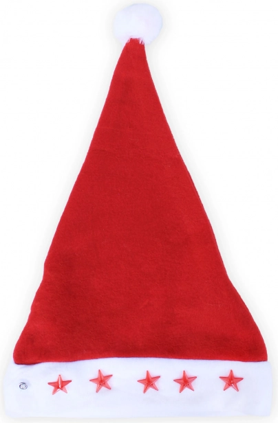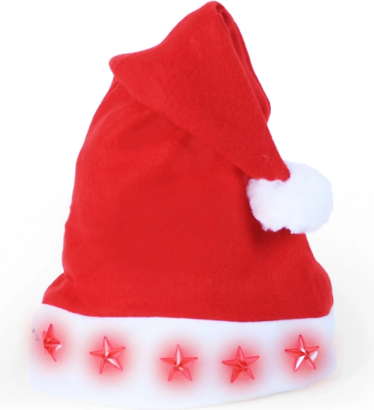 Озарете празничната атмосфера с тази стилна коледна шапка от филц, която има мигащи звездички отпред. С едно натискане на бутона активирате светлинните ефекти – перфектен избор за коледни партита, семейни тържества и тематични снимки. Включени са 2 батерии LR44 за незабавна употреба.