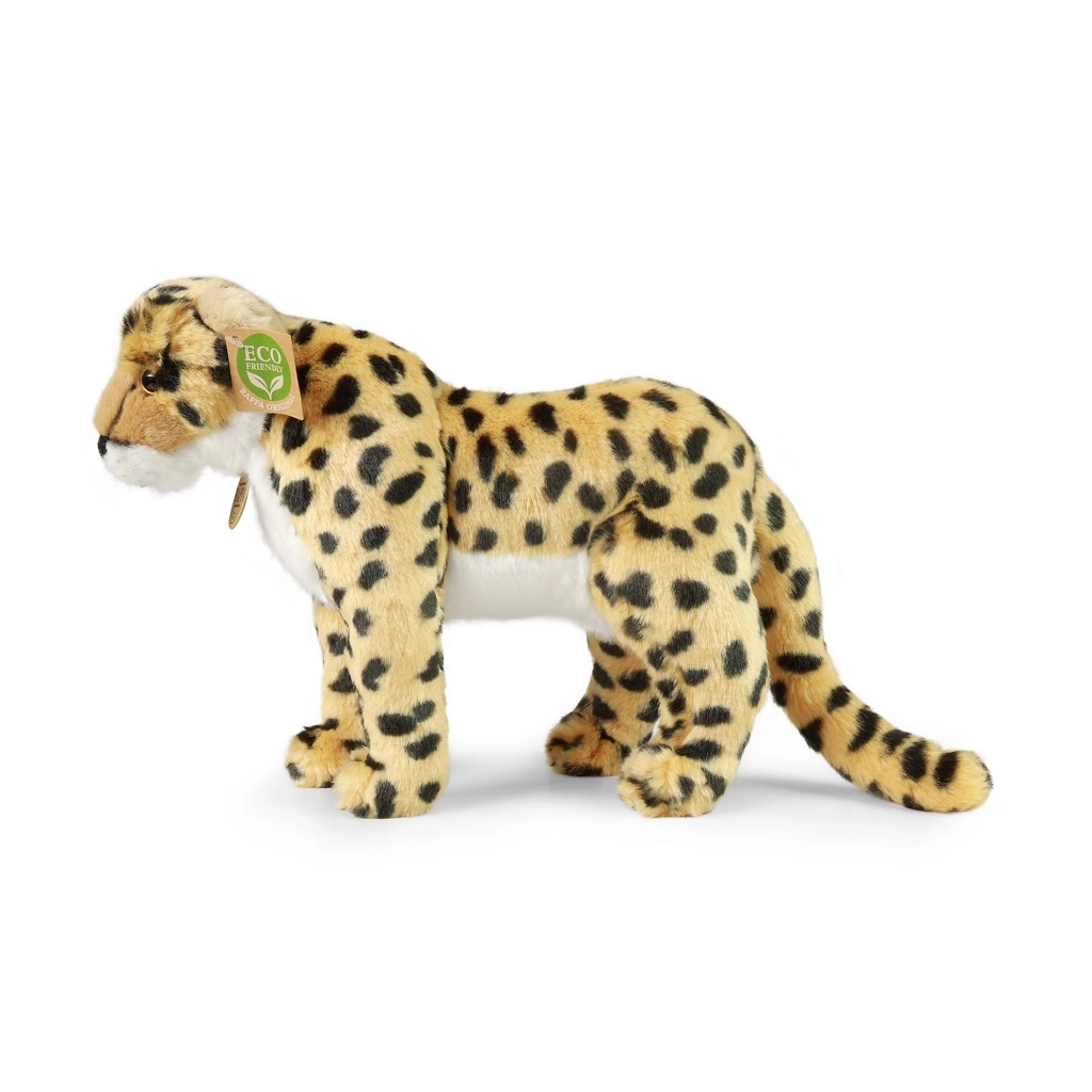 Очарователен плюшен гепард с размер 30 см, изработен от мек материал с реалистичен десен и ръчна изработка. Благодарение на ECO‑FRIENDLY пълнеж от рециклирани PET бутилки ще зарадва не само децата, но и родителите, които мислят за природата. Качествен плюш и безопасно изпълнение за най-малките го правят идеален приятел за гушкане и игра.