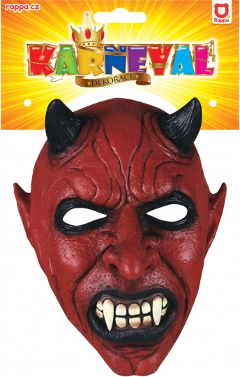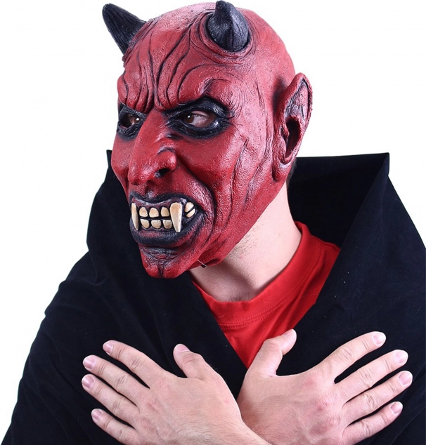Високодетайлна латексова маска с реалистични елементи на дявол, включително черни рога и остри зъби, които добавят към страховитата автентичност.