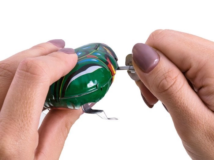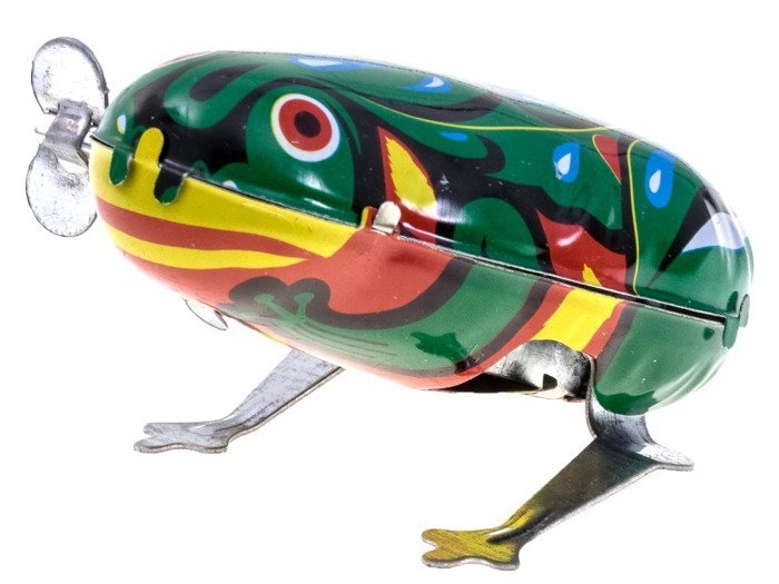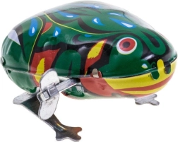 Тази сладка играчка-жабка е изработена от метал в красив зелен цвят и се задвижва от пружинен механизъм, който се навива с ключе. Жабката носи усмивки на лицата на всички поколения. Благодарение на малките си размери лесно пасва в детската ръчичка и е идеална за забавни моменти, например когато е скрита в дамска чанта. Убедете се, че я имате като талисман за късмет!
