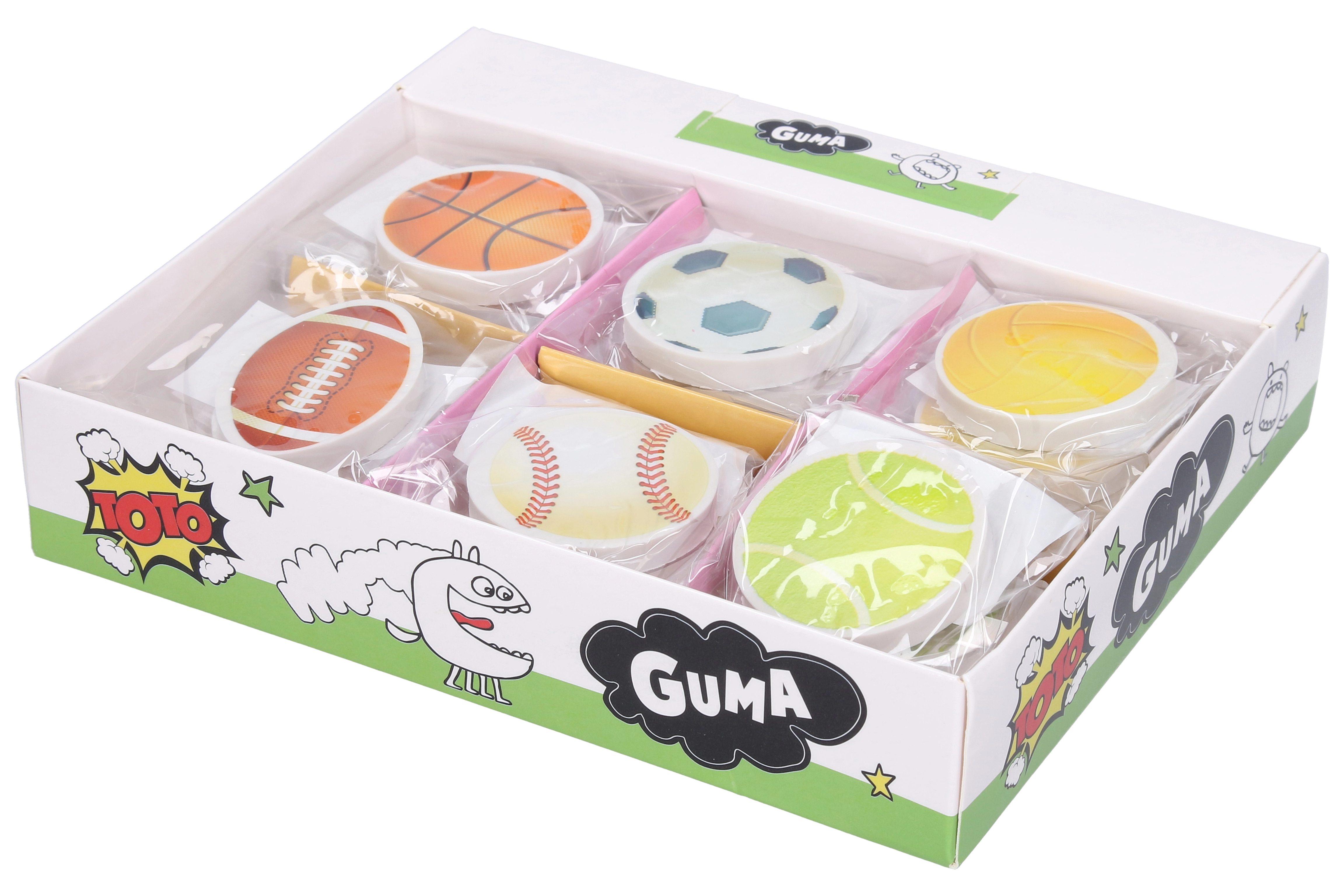 Практичен училищен помощник за ежедневното писане и рисуване. Тази гума за триене със спортен мотив надеждно премахва графитни следи и оставя тетрадката чиста. Благодарение на компактните размери пасва в пенал и на работно бюро. Вариантите се изпращат според актуалната наличност; желан вариант можете да посочите в бележка към поръчката.