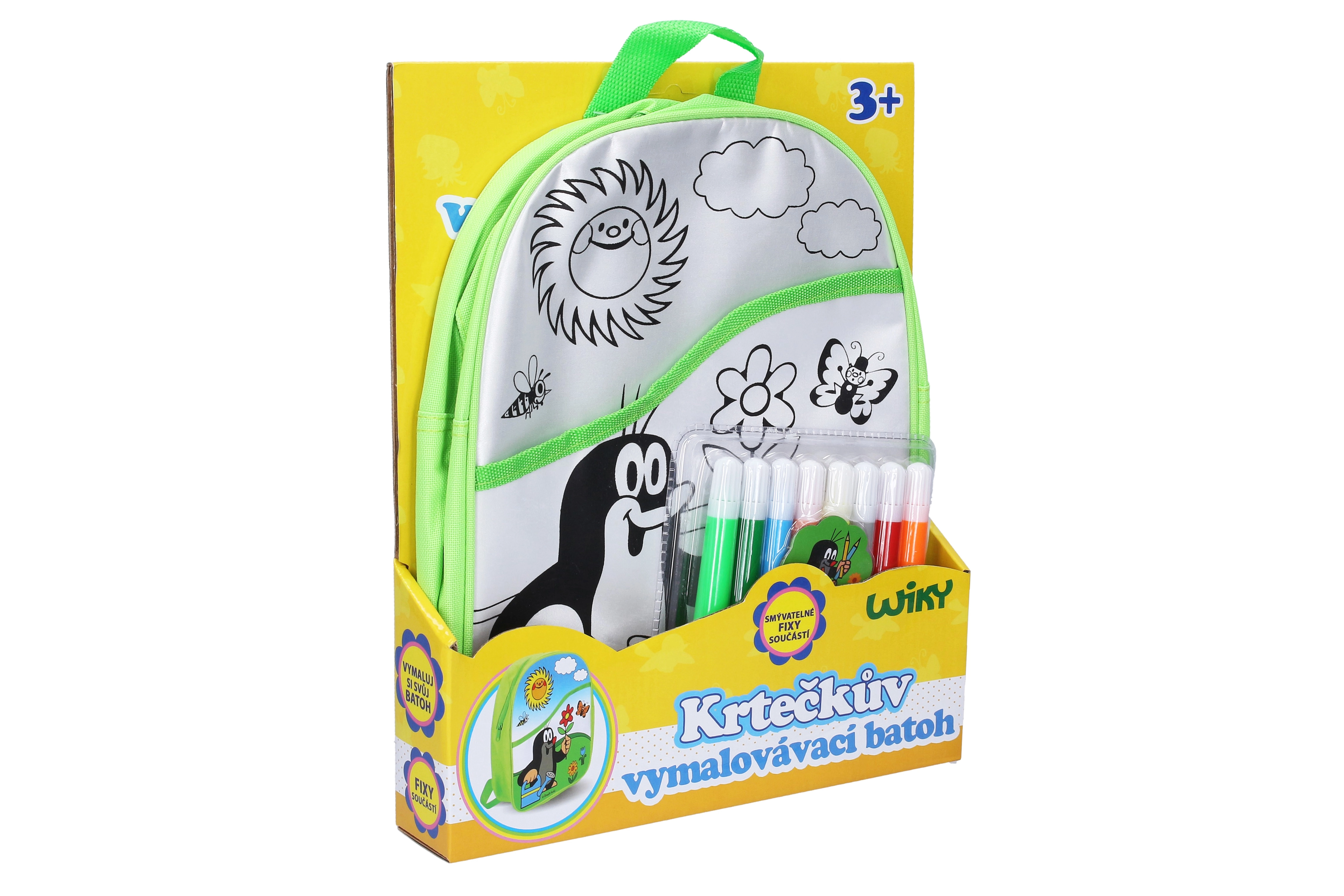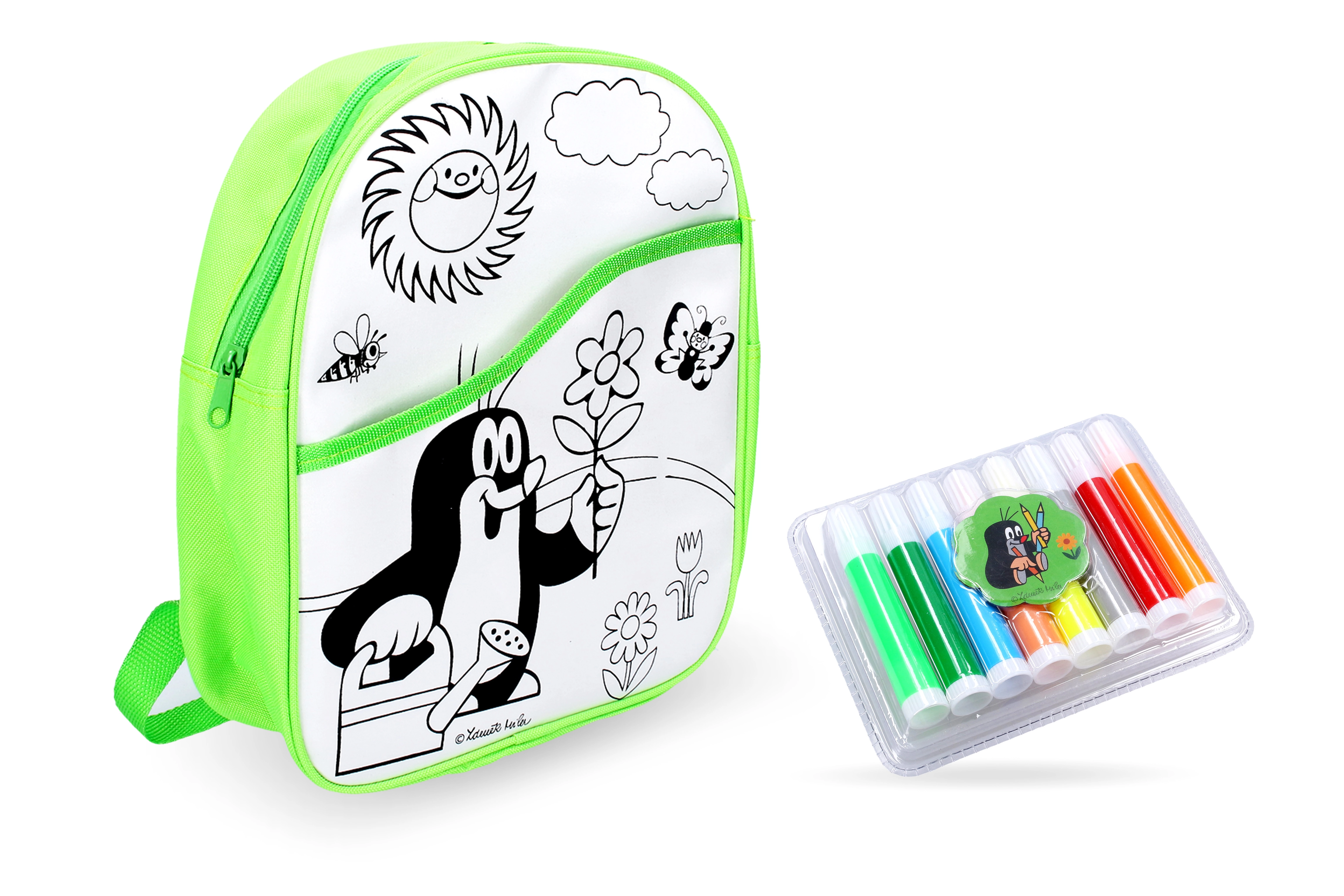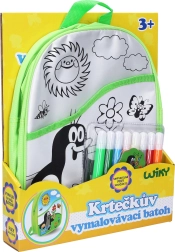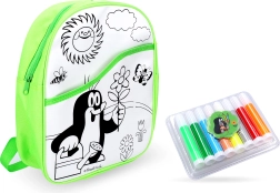 Оцветяваща раничка Къртичето със зелен фон 30 см + 8 флумастера