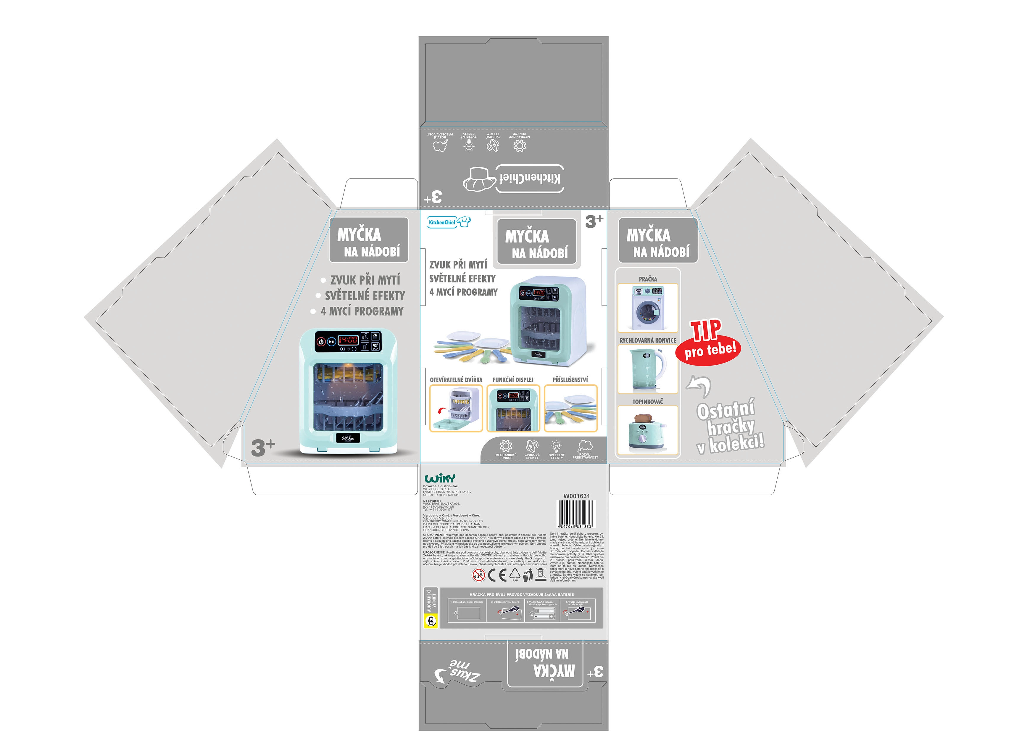 Забавната детска миялна машина превръща почистването в игра! Предлага светлинни и звукови ефекти, 4 програми за миене и възможност за настройка на време. Идеална за малки домакини от 3 години – просто поставете съдовете, изберете програма и забавлението започва.