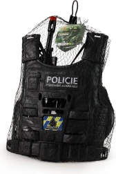 Професионално изглеждащият полицейски комплект за малки пазители на реда предлага всичко необходимо за напрегната екшън игра. Благодарение на чешките надписи върху жилетката и реалистично изглеждащите аксесоари децата ще се насладят на автентично изживяване и ще развият въображение и комуникационни умения.