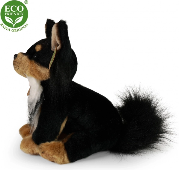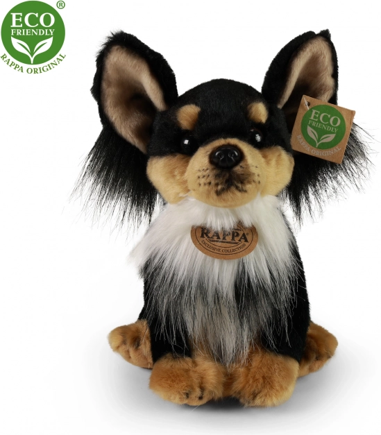 Очарователното плюшено куче чихуахуа ще зарадва всяко дете и любителите на животните. Изработено е от висококачествен плюш, има реалистична изработка и благодарение на ECO‑FRIENDLY пълнеж от рециклирани PET бутилки е щадящо към природата. Идеално като подарък и гушкане в леглото.