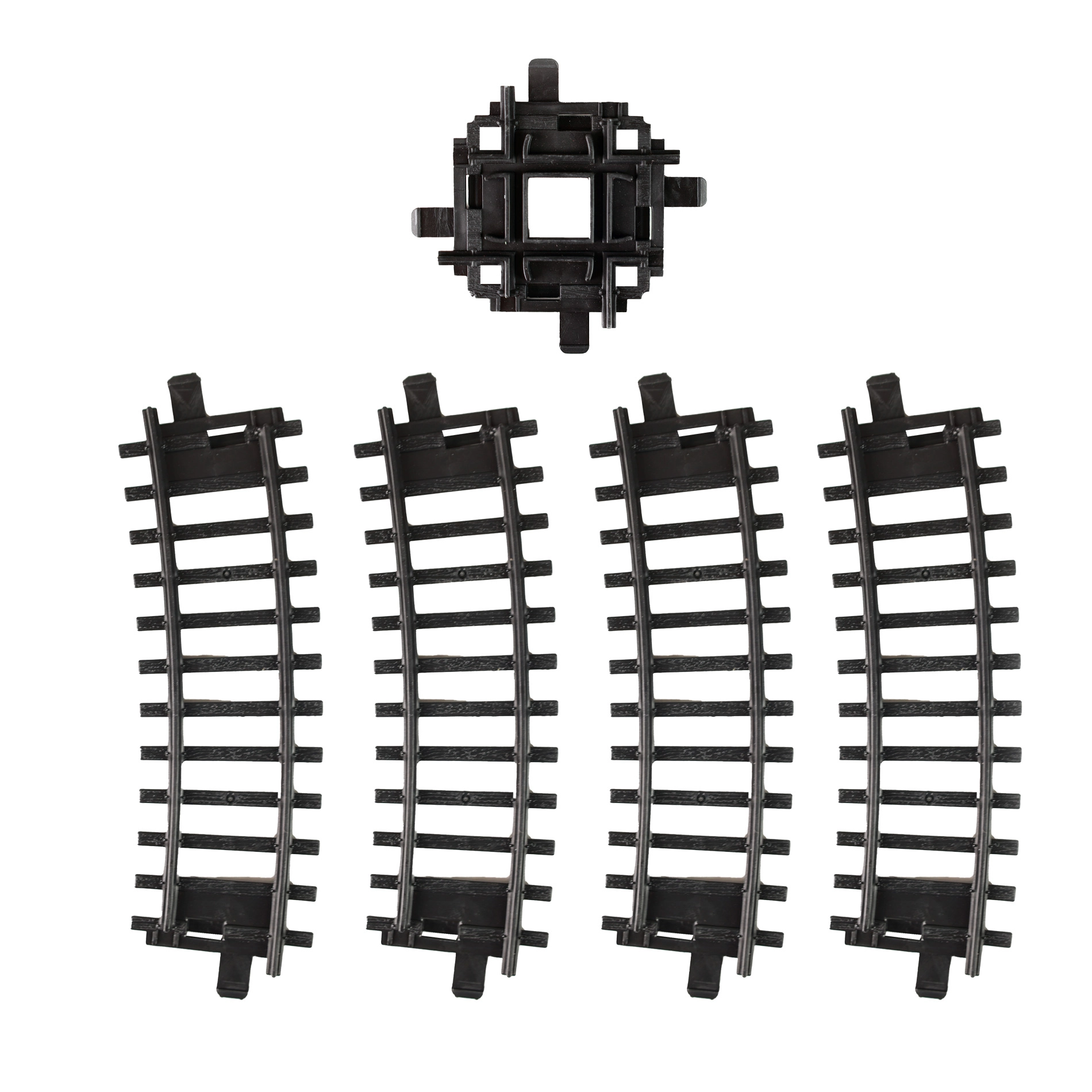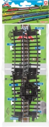 Този практичен комплект железопътни елементи осигурява бързо и лесно разширение на твоето влакче-трасе. Получаваш 2 извити релси за плавни завои и кръстовище, което създава интересни пресичания на линиите и нови игрови ситуации. Елементите се свързват лесно и позволяват изграждане на разнообразни оформления – от прости окръжности до по-сложни мрежи.