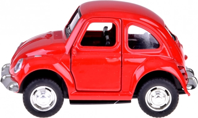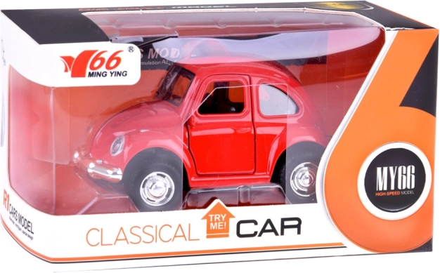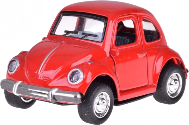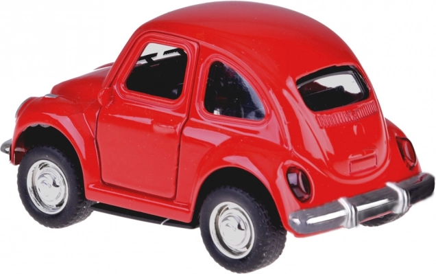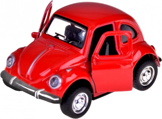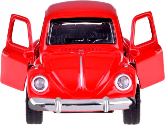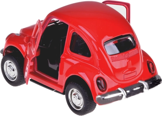 Стилна червена метална количка в стил класически „бръмбар“, която ще зарадва малките шофьори и колекционерите. Предлага отварящи се врати, светлинни ефекти, звуци и лесно движение с pull-back (обратно навиване). Благодарение на гумените колела се движи отлично, а компактните размери са идеални за път. Доставя се в подаръчна опаковка.