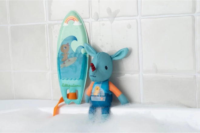 Сърф дъската с мотиви на вълни и дъга носи атмосферата на плажните преживявания директно във вашата баня.
