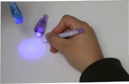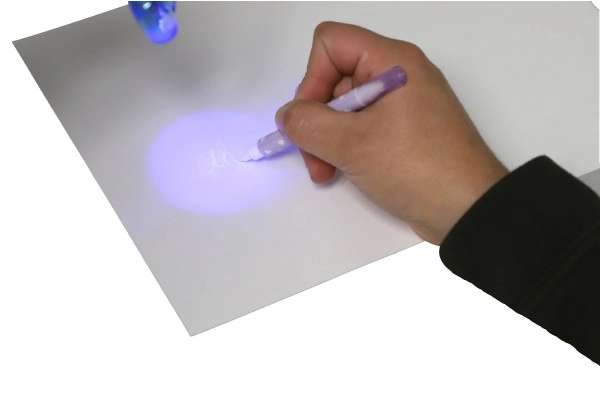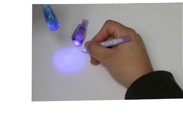 Невидимото мастило е видимо само под UV лампата в капачката на писеца. Страхотно за тайни съобщения и шпионски игри.