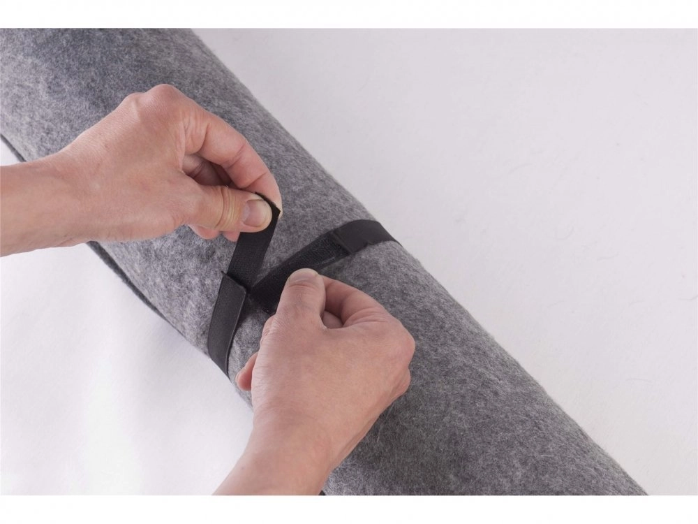 След приключване на сесията поставете тубуса върху подложката с пъзела, просто го навийте и фиксирайте с включените велкро ленти. Всичко остава на мястото си и нищо не се губи.