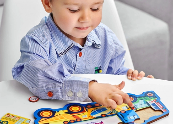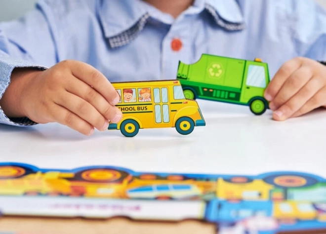 Всяка част показва различно превозно средство или знак, така че децата лесно усвояват нови понятия и разширяват речника си.