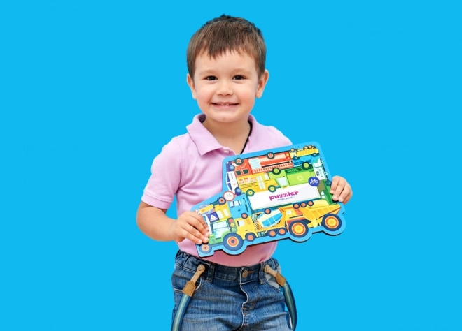 Размерът на сглобения пъзел е приблизително 29 × 20,5 cm – идеален за детските ръце и за домашната игрална маса. Пъзелът е отличен избор за деца, които се интересуват от всякакви автомобили, като същевременно подпомага координацията око–ръка и когнитивното развитие.