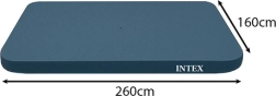 Практичното покривало за басейн INTEX ефективно предпазва водата от листа, насекоми и прах, като същевременно помага да се запази приятната температура. Благодарение на качествения материал е устойчиво на атмосферни влияния и механично износване и се монтира лесно – просто го разстелете върху повърхността и го фиксирайте с включения шнур.
