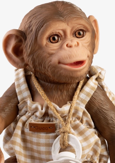 Очарователна и правдоподобно изработена бебе-маймунка с изцяло винилово тяло с размер 32 см, която ще зарадва малки и големи любители на животните. Предлага реалистични детайли, позиционираща се е и благодарение на използвания материал е подходяща за къпане (с внимание към миглите). Ръчно изработена в Испания, доставя се в подаръчна кутия.