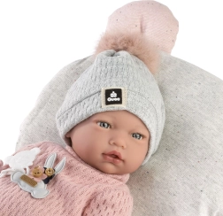 Тази реалистична бебешка кукла ще зарадва всяко дете със своята автентичност и приятно изпълнение. При лек натиск върху гърдите издава радостен смях, който стимулира въображението и развива социалните умения по време на игра. Мекото платнено тяло е приятно на допир, а ръцете и краката, закрепени със стави, позволяват лесно позициониране и сядане.