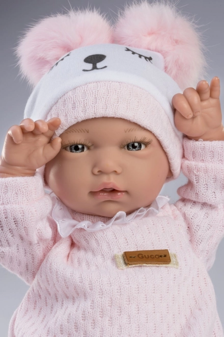 Куклата Guca Andrea е като истинско бебе – има меко платнено телце, приятно е за носене и при натискане на гърдите издава реалистичен звук на смеещо се дете. Ръцете и краката са закрепени със става, така че куклата е позиционируема и може да седи самостоятелно. Включена е биберона като декоративен аксесоар, а всичко е стилно опаковано в подаръчна кутия.