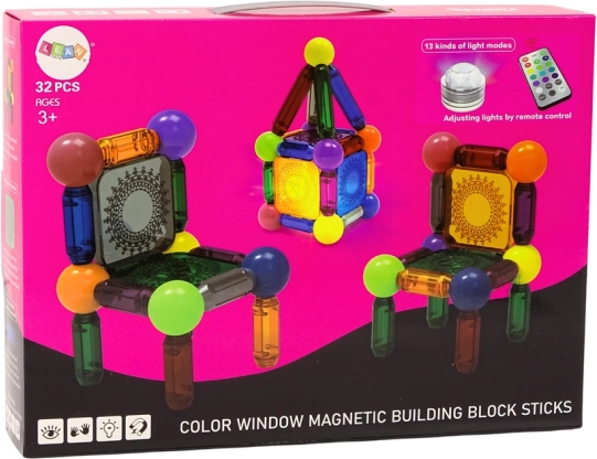 Открийте креативния свят на конструкциите с този магнитен конструктор с 32 части. Благодарение на магнитите елементите се свързват лесно и здраво, позволявайки строене под различни ъгли и създаване на стабилни форми. В комплекта има LED лампичка с дистанционно управление и сменяеми цветове, която придава на вашите творения уникален ефект. Отличен избор за развитие на креативността, пространственото мислене и фината моторика на деца от 3 години.
