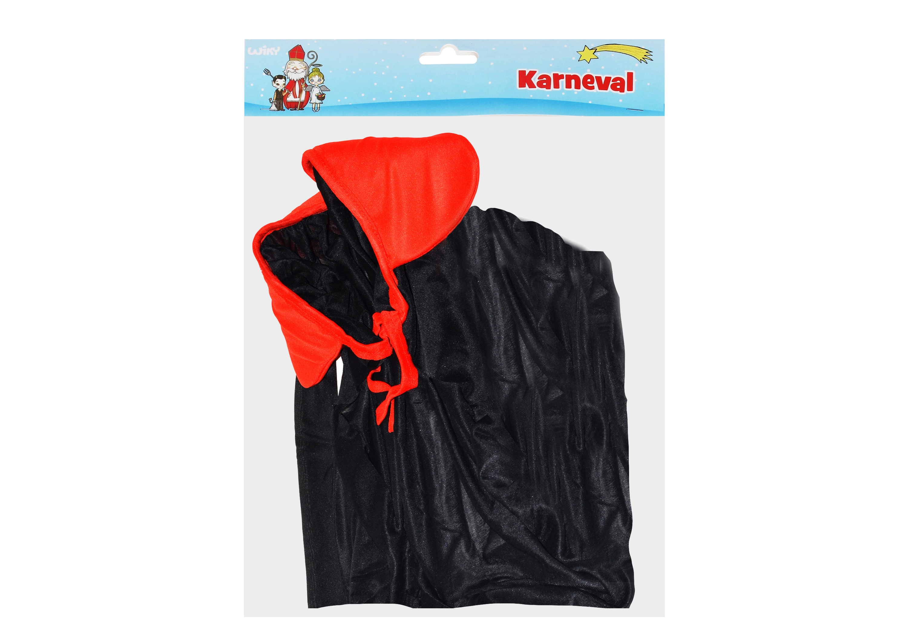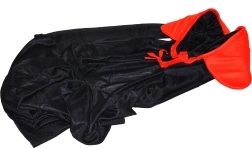 Стилен детски плащ за малки страшилища и дяволчета. Перфектно допълва костюм на вампир или дявол и моментално създава ефектна карнавална визия. Лек и удобен материал, идеален за маскарад, Хелоуин и училищни тържества.