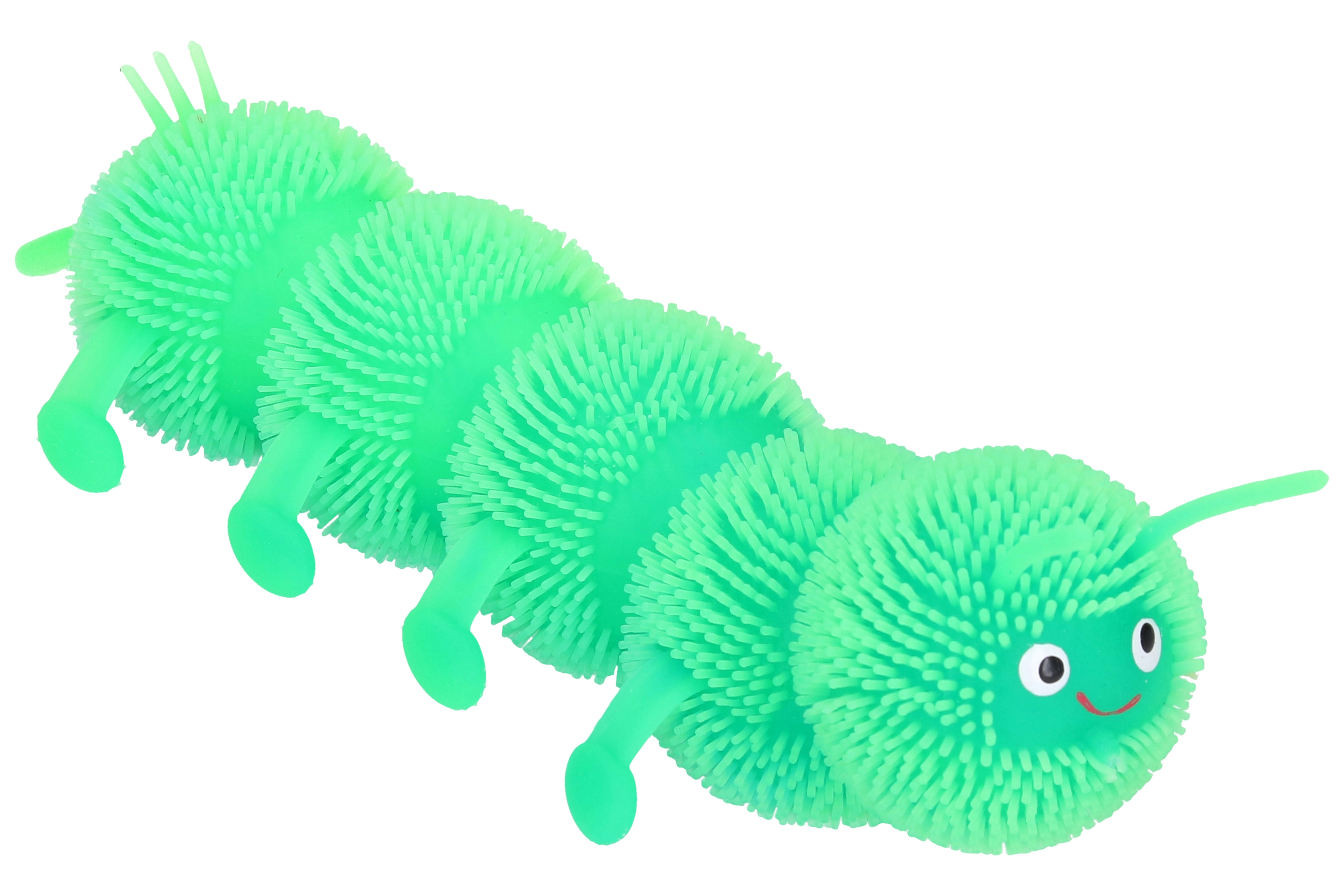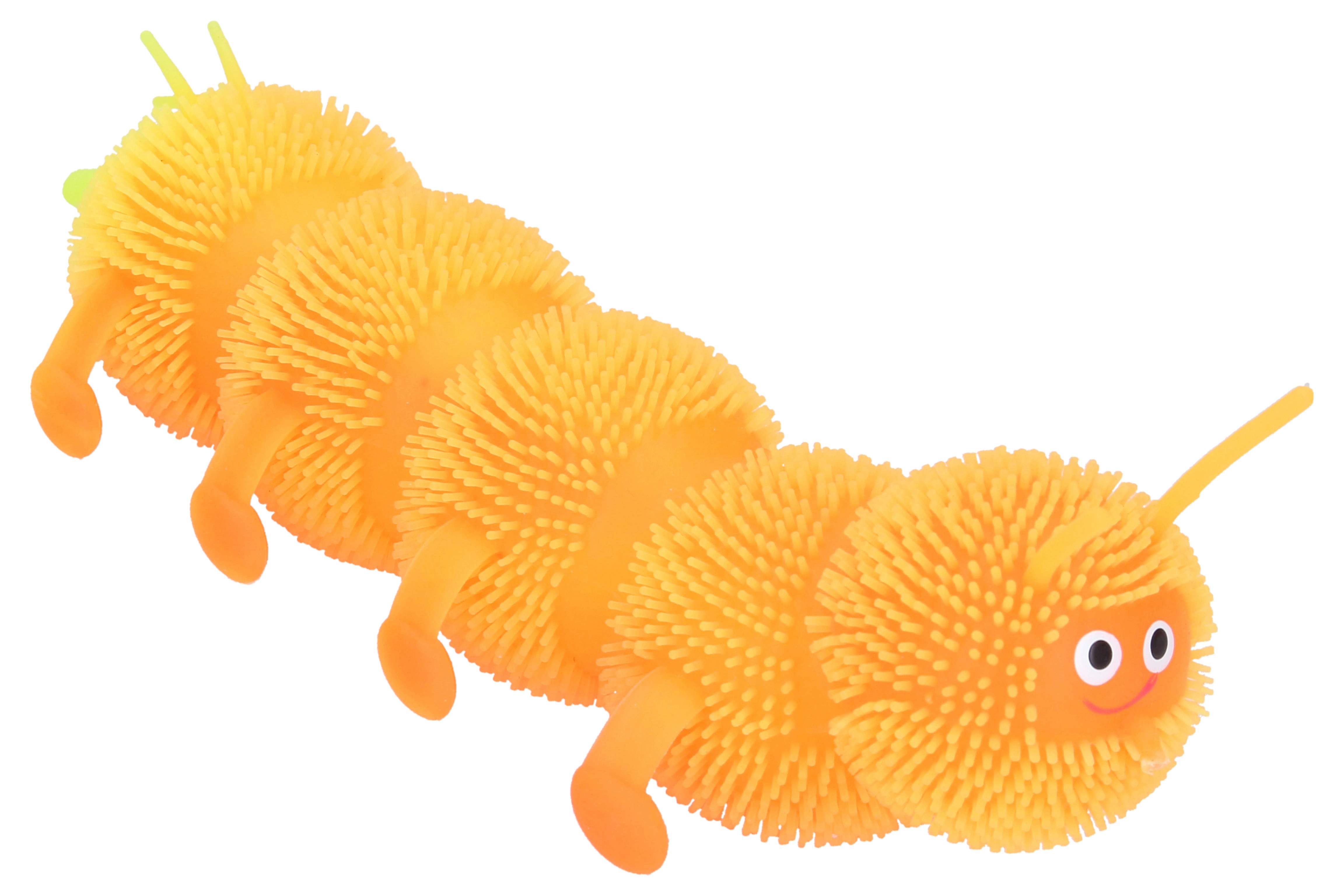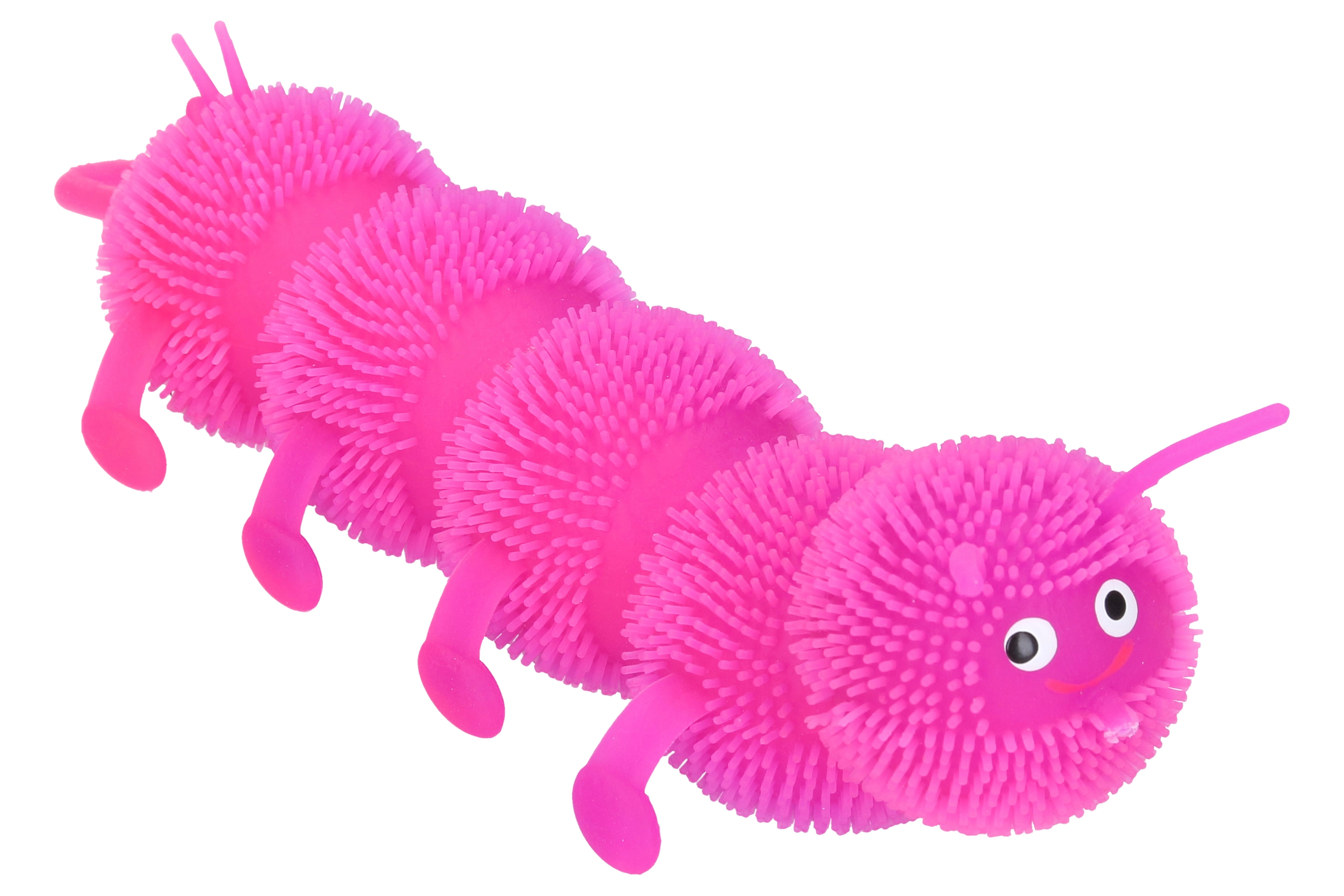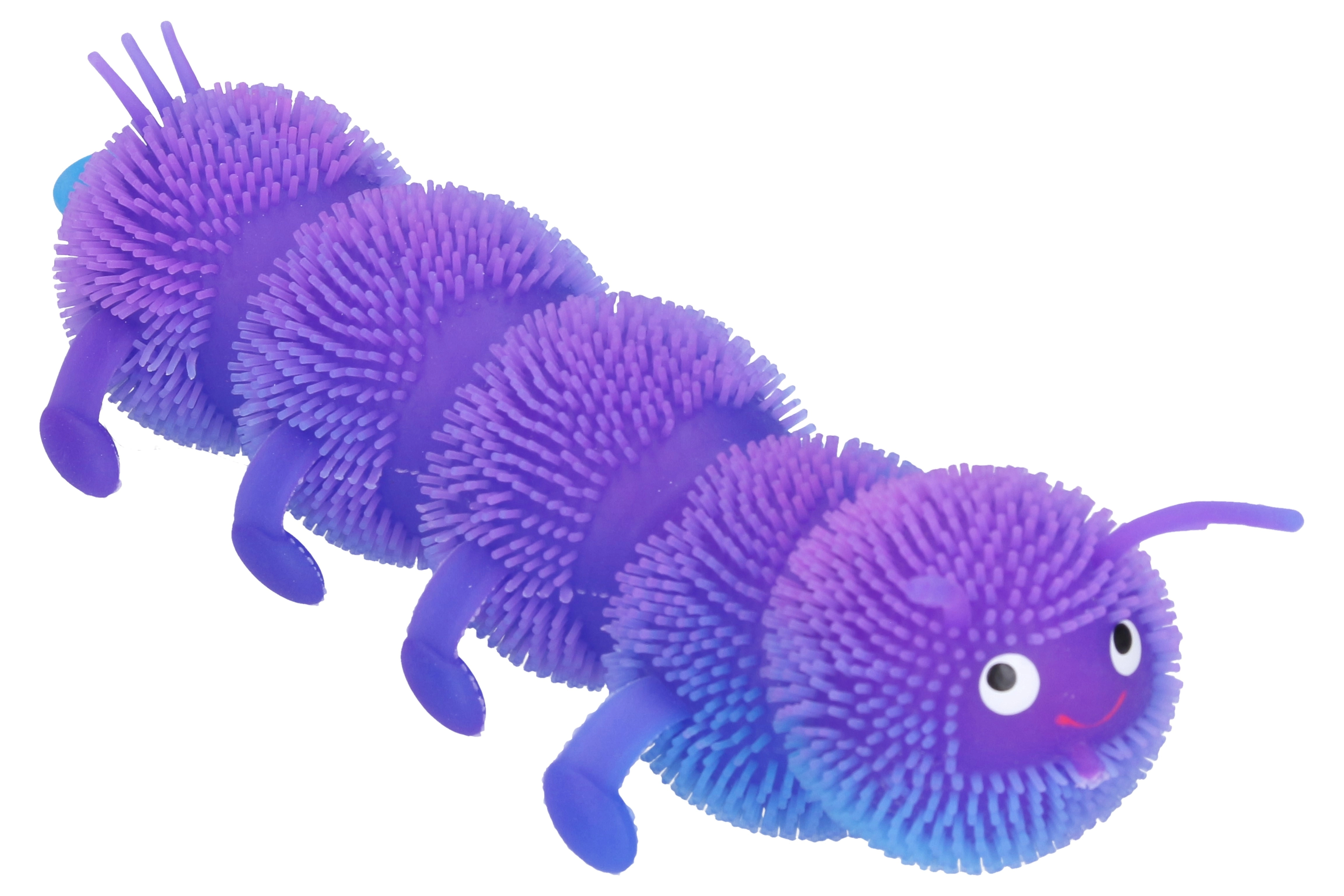 Нашата 21-сантиметрова стискаща гъсеница е перфектна природосъобразна играчка за деца, която подпомага тяхната креативност и сетивно възприятие. Благодарение на четирите цветови варианта (оранжев, лилав, зелен и розов) децата могат да изберат своя любим вариант.