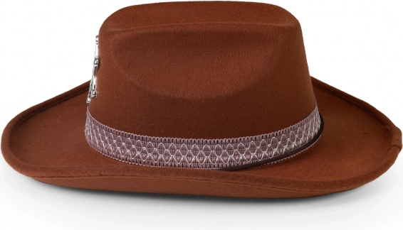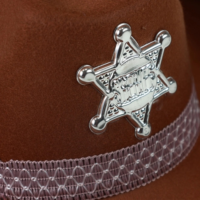 Превърнете малкия каубой в шериф за миг. Кафявата шапка със стилна лента и блестяща шерифска звезда стои стабилно благодарение на ластика, така че пасва отлично дори при активна игра.