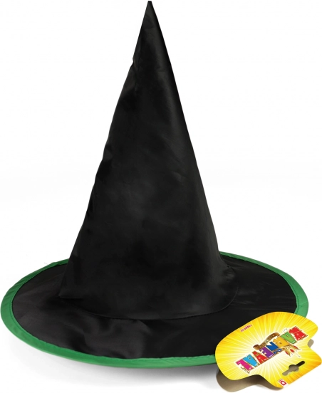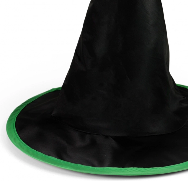 Перфектно допълва хелоуинския костюм на всяко малко вещерче. Изработена от качествена черна шушлякова материя, шапката е украсена с ярък зелен кант, който привлича вниманието.