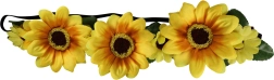 Тази диадема е украсена с три големи жълти цветя, които привличат вниманието и придават на визията ви свежест и оригиналност. Диадемата е удобна благодарение на ластичната фиксация, която осигурява сигурно и комфортно носене през целия ден.