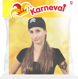 Черна кърпа с емблематичен череп и кръстосани кости придава на вашия костюм безкомпромисна визия на морски вълк.