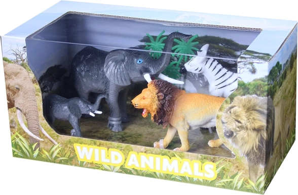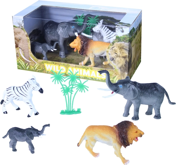 Разширете домашния си ЗОО с този страхотен комплект диви животни в кутия. Опаковката съдържа слон, малко слонче, зебра, лъв и палма – идеален за креативна игра и учене за природата.