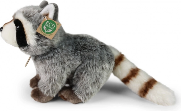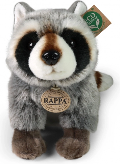 Изпитайте радост с този плюшен миещ мечок от ексклузивната колекция RAPPA. С размер 28 cm, ръчно ушит от висококачествен нежен плюш, миещият мечок изглежда като истински. Неговите детайлно изпипани елементи, като раираната опашка и контрастните шарки на козината, засилват реалистичния му вид.
